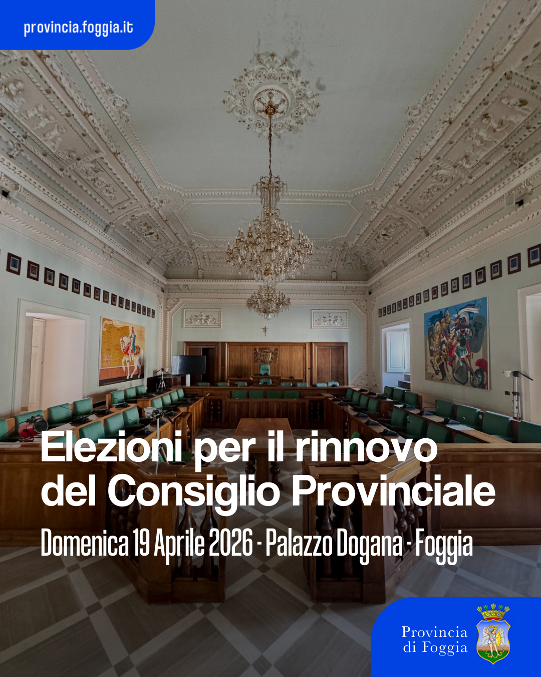 La Provincia di Foggia informa che, ai sensi dell’articolo 1 della Legge 7 aprile 2014, n. 56 e successive modificazioni, sono stati convocati per il giorno 19 aprile 2026 i comizi elettorali per il rinnovo del Consiglio Provinciale.